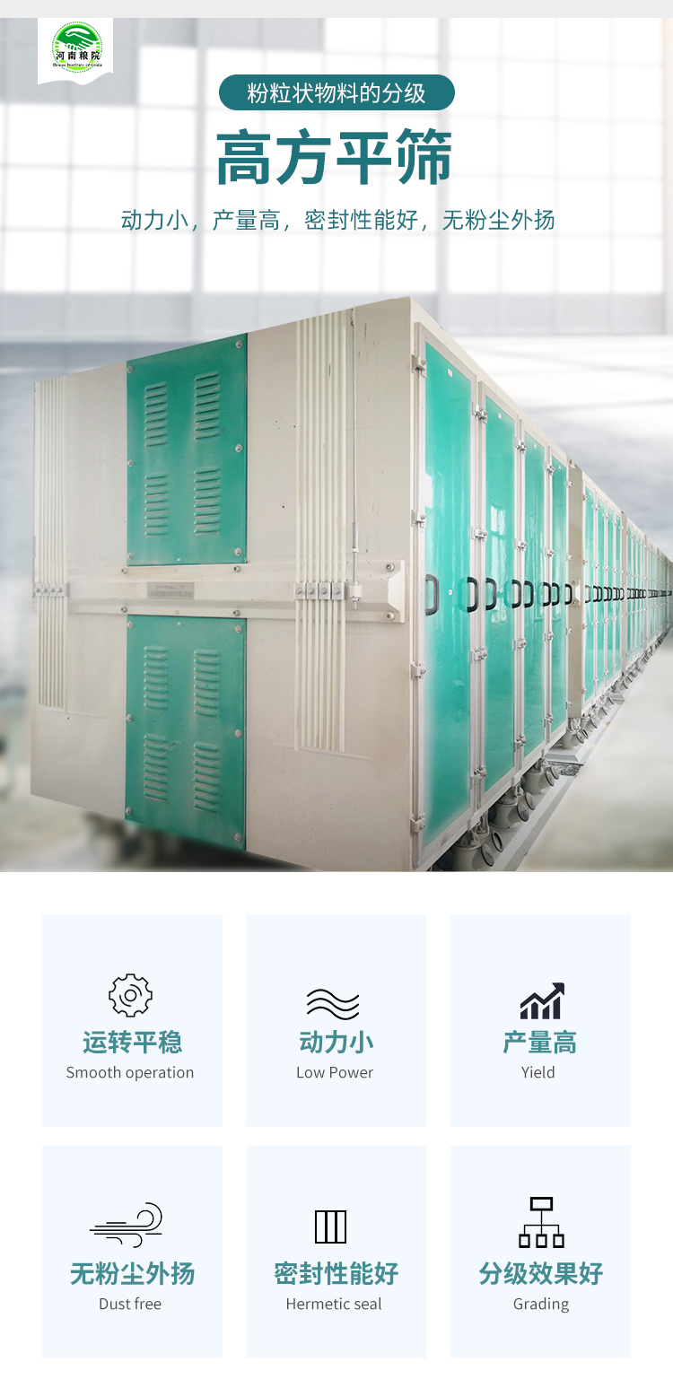 FSFG系列高方平篩適用于各種粉粒狀物的分級篩理,廣泛用于玉米加工廠、玉米淀粉廠、面粉廠、飼料廠等的分級篩理,是理想的顆粒、粉粒物料分級篩理設(shè)備,本設(shè)備動力小,產(chǎn)量高,密封性能好,無粉塵外揚(yáng)。